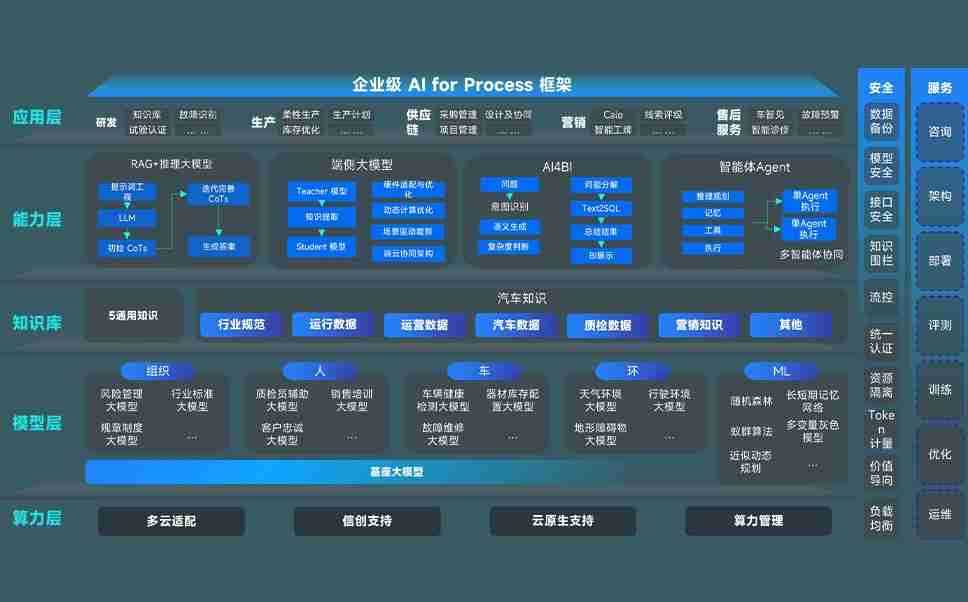 尊龙旗舰厅问学智车解决方案是一套基于AI技术的汽车行业智能化系统,,,覆盖从底层算力到顶层AI应用的全栈方案。。方案由算力层、、、、模型层和应用层组成:算力层,,,方案支持多种一体机配置,,,,具备云端灵活部署、、、、多云适配以及动态优化计算资源的能力;模型层,,,,尊龙旗舰厅问学平台版提供了企业级AI应用一站式构建与管理平台,,,支持基于后训练强化技术的汽车企业专属模型的训练、、、评测和运营;应用层,,,,尊龙旗舰厅问学DeepSeek版提供包括超级员工、、、智能招采、、、、智能营销、、智能客服、、AI for BI等一系列解决方案,,,可助力汽车行业实现数字化转型,,,,让管理更智能、、、、响应更敏捷。。。
